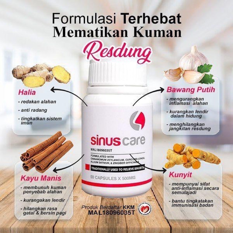 Syarikat sangat yakin Sinuscare dengan ramuan ubat dari bahan herba jenis masakan yg dah dipercayai turun temurun diformulasikan utk ikhtiar terbaik bantu. Ubat resdung 100 harba semulajadi. Vitamin dan mineral ini boleh membantu meningkatkan imuniti tubuh dan mengurangkan simptom resdung.